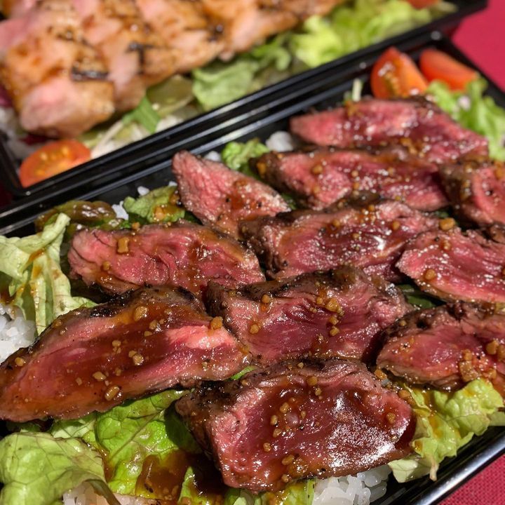 USの牛ロースをグリルした「牛ロースステーキ重」¥1800+税
